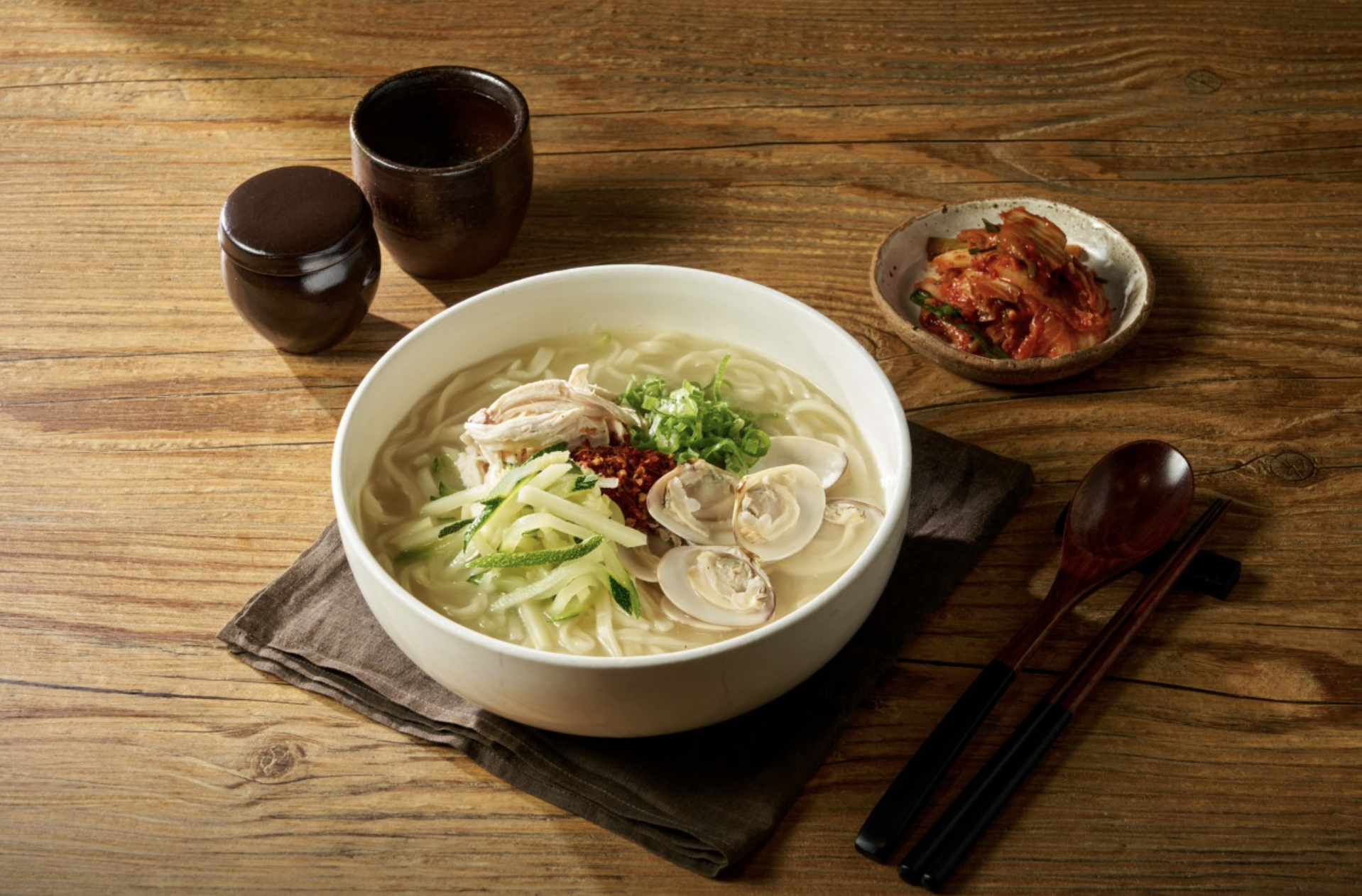 멸치·다시마 육수에 대파향과 마늘향이 어우러진 담백한 국물!