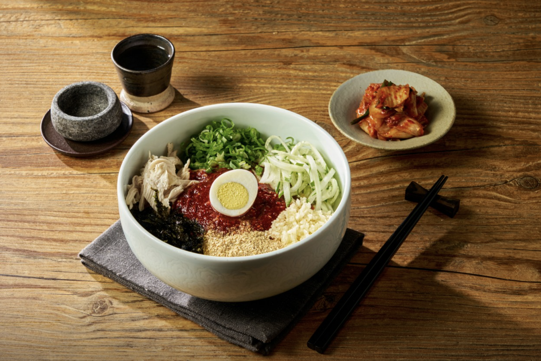 멸치·다시마 육수에 대파향과 마늘향이 어우러진 담백한 국물!