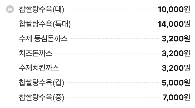 - 찹쌀탕수육(대) 10,000원
